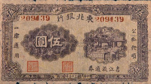 抗日戰(zhàn)爭勝利后,黨制定了“建立鞏固的東北根據(jù)地”的戰(zhàn)略方針,派出大批干部和人民武裝進(jìn)入東北,建立民主政權(quán)。東北解放區(qū)先后建立了東北銀行、嫩江省銀行、吉林省銀行、關(guān)東銀行、牡丹江實(shí)業(yè)銀行和合江銀行。